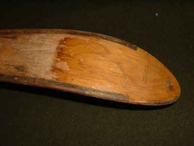Ski tip of 1943 vintage military ski made of laminated hickory.