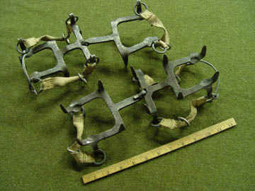 Run away straps to prevent skis from being lost if the binding releases. These early bindings were not designed to release while skiing.