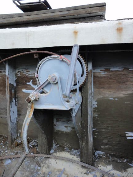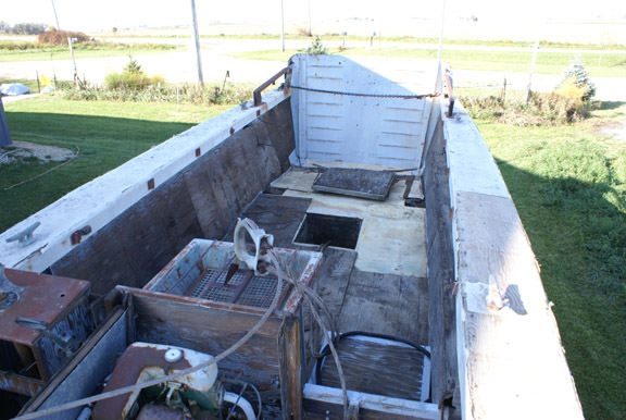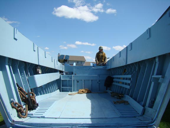 An attempt to determine the age of the boat was not fruitful since the hull number could not be found. Other clues are needed. Inspection of the boat reveals that the rear machine gun pits have been covered over with fiberglass. (Figure 5) Figure 6 shows the bow ramp winch which was internal to the boat.