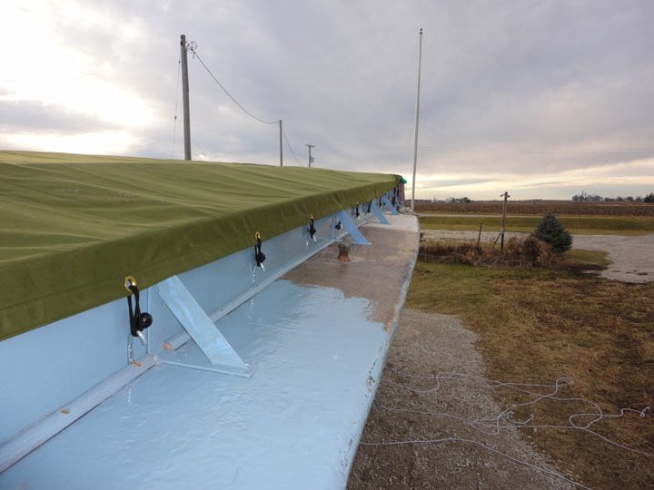 Sealing strip added to coaming board on starboard side. New cover completed.