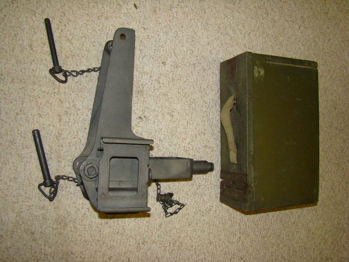 Original M40 cradle and 1917 wood ammunition box. This cradle was used on LVCP's with a gun shield adapter added.