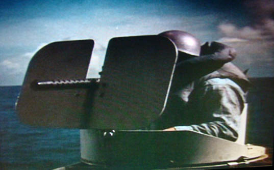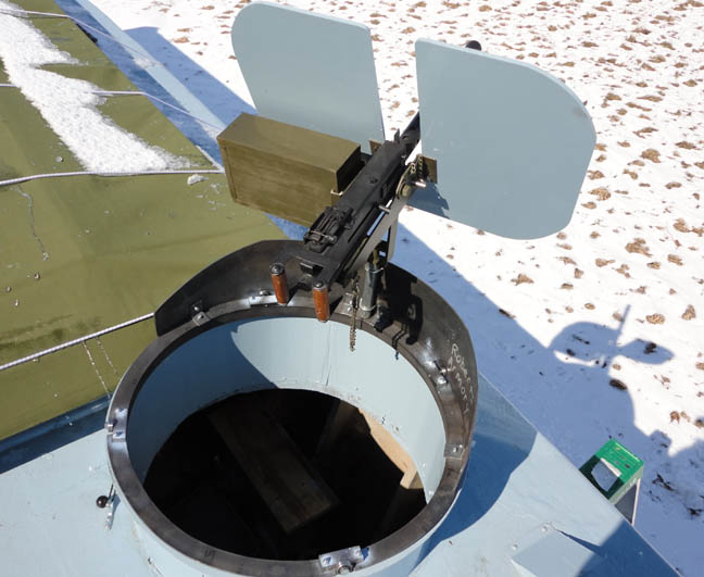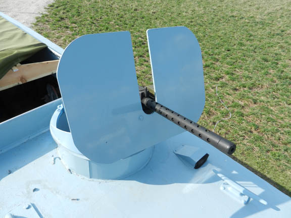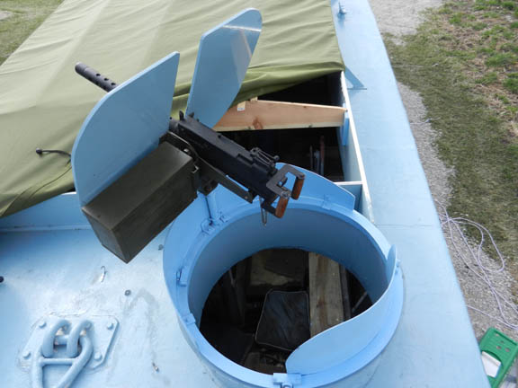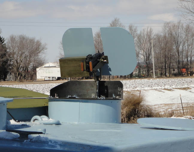 Reproduction Mark-21 US Navy gun mount with reproduction .30 cal. machine gun (rear view).
