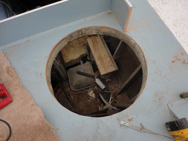 Figure 24 Cutting hole in deck to match covered over gun pits.