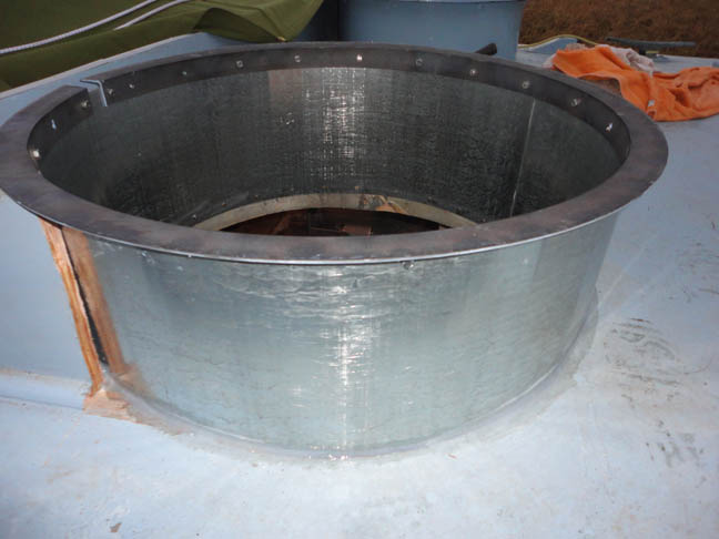 Repair of deck on starboard side with fiberglass cloth and resin.