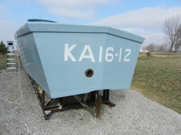 For the Higgins boat being restored, the attack transport Aquarius (AKA-16) shown in Figure 3 (U.S. Navy Photo) was chosen as the host ship. Since Aquarius had 15 LCVP's, this one will carry the identification number KA16-12, host ship Aquarius AKA16 and boat number 12.