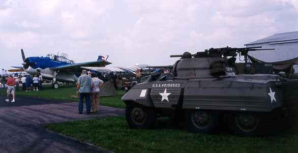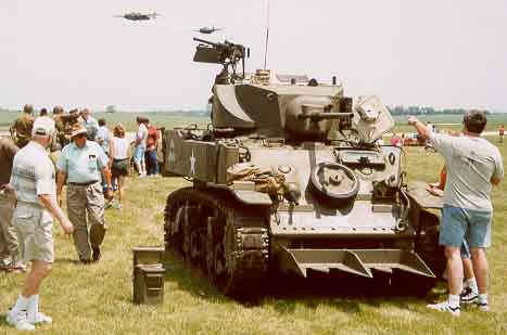 B25 and TBM fly past M5 Light Tank, Air Expo, Aurora Airport, Illinois, June, 2001