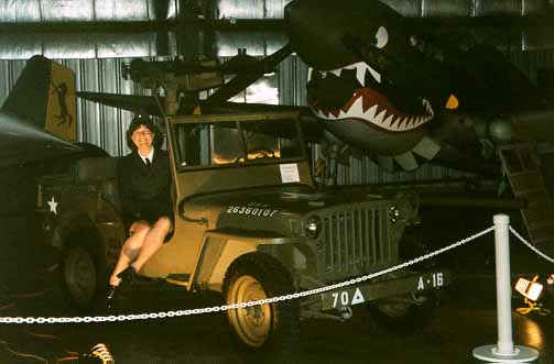 1945 Willis MB with 50 cal. in front of P-40, Aurora Hangar Dance, April 2001