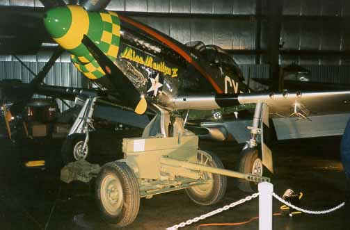 Anti-tank gun in front of P51 Mustang, Aurora Hangar Dance, April 2001