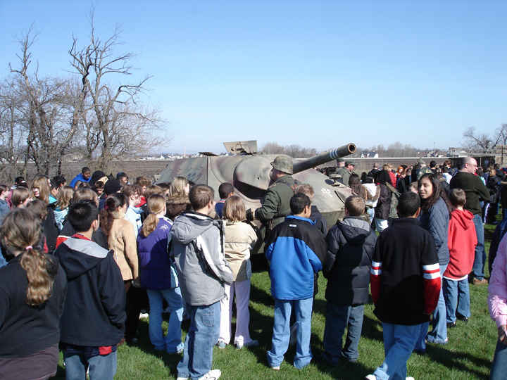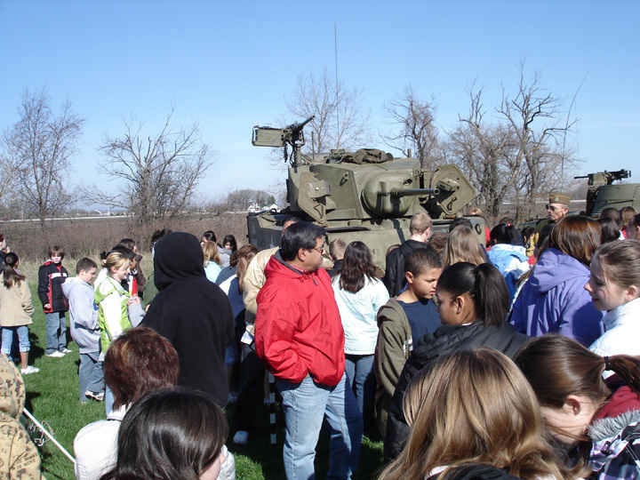 Class learns about M8 armored car, Jewel Middle School, North Aurora, Illinois