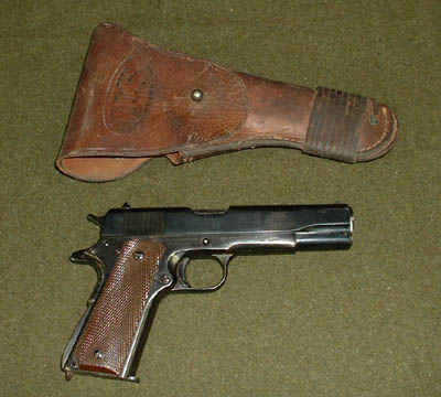 Pistol, Cal. 45, Automatic, M1911 and holster used mostly by officers in the 10th Mountain Division