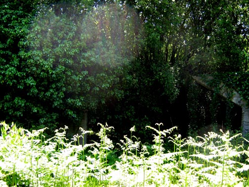Photo 4 is a view from the same location in May 2010, taken by Sean Claxton. The area is overgrown with vegetation.