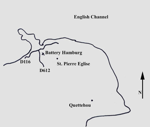 Photo 8 is view of another naval gun at casemate number 2 (turm 2) at Battery Hamburg with Captain Taynton in the photograph. Thanks to Richard Drew for help in identifying this photo. The guns of Battery Hamburg fired on Operation