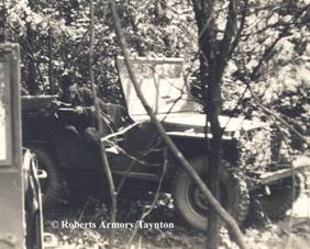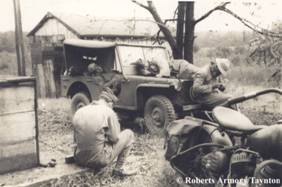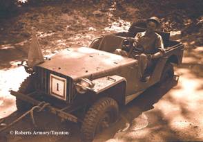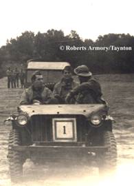 Shown to the left is an early Bantam Model BRC 40 Jeep with an officer in the front passenger seat and Sgt John Dixon, the driver. Ft. A.P. Hill, 1941 (Taynton Photo) |