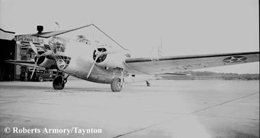 In 1941, Lt. Taynton went on temporary duty (TDY) to Sherman Field, Ft. Leavenworth, Kansas. This was an orientation regarding the role of bomber aircraft with respect to combat tactics that were being developed in anticipation of upcoming hostilities. Lt. Tayton was given detailed training on the B-18 bomber, which was in use at the time by the military. The Douglas Aircraft Co. developed the B-18 to replace the Martin B-10 as the Army Air Corps' standard bomber. The B-18 “Bolo” design was taken from the early DC-2 commercial transport. Approximately 133 B-18’s were delivered to the US Army Air Corps in January 1936. Several B-18’s were destroyed during the Pearl Harbor raid. Because of inadequate engine power and defensive armament, the aircraft was relegated to training, transport, and shore patrol duties. |