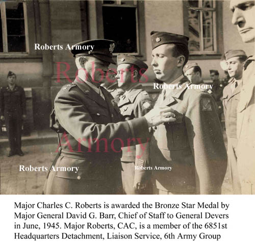 Photo 12 shows now Major Charles C. Roberts Receiving the Bronze Star from General Barr in June, 1945.