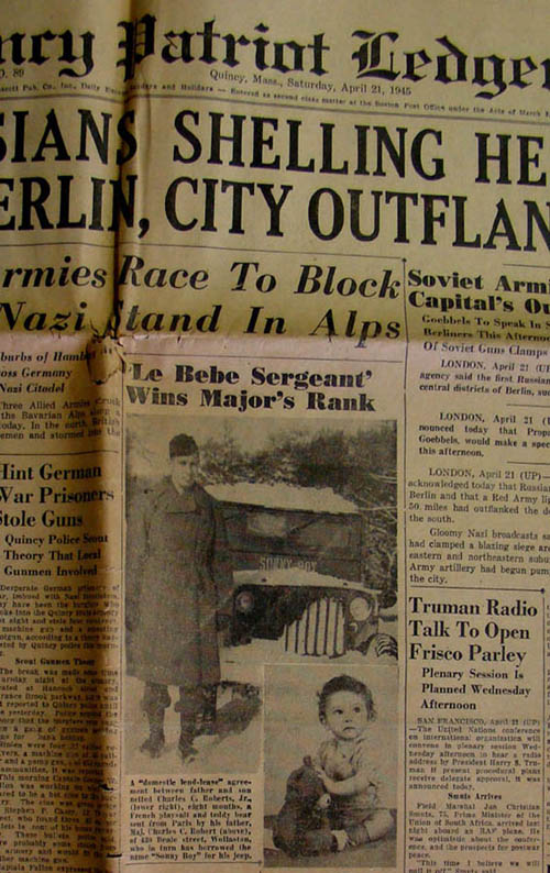 In April of 1945, this photo appeared in the Quincy Patriot Ledger (Quincy, Massachusetts, Photo 9).