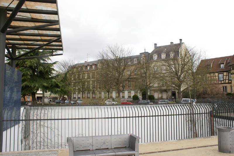 Photo 16 is a view of a victory ceremony in February, 1945 looking down the Avenue de la Republique in Colmar. Photo 17 is a similar view taken in 2010.