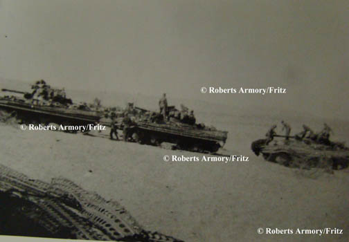 Photo 1 shows duplex drive (DD) tanks (amphibious tanks equipped with propellers) and canvas water skirts for floatation.