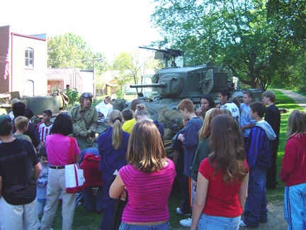 School WWII history class, Midway Village WWII reenactment, Rockford, Illinois, September 18, 19, 2004
