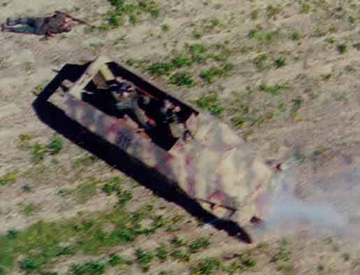 German halftrack hit by 37mm armor piercing ammo from Stuart and Locust