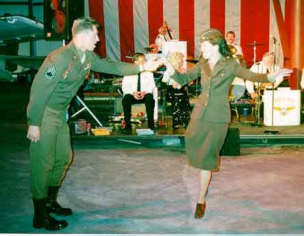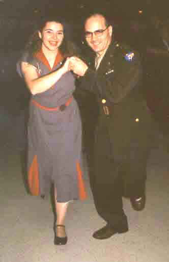 Couple dancing the box step (Photo 5). Kathy in WASP uniform. Bill in enlisted class