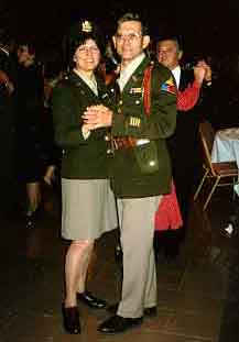 In Photo 1 Ray wears an airborne unit enlisted winter uniform with rank of sergeant. Sue wears an