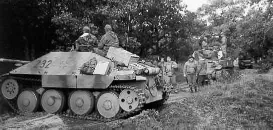 Assault gun with camouflage awaits to ambush axis armor