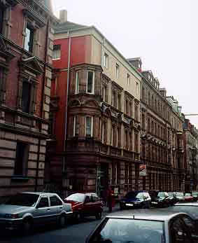 Typical row of homes in suburban Nuremberg. Notice the center building with different architectural design on the top floor. The top apartment was repaired after being destroyed during bombing in WWII.