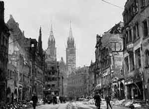 Historical section of Nuremberg shortly after the January 2, 1945 air raid by British bombers and in 1998