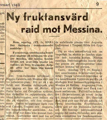 Figure 5 is an article that is titled “New Terrible Raid on Messina.” Messina, in northern Sicily, was apparently a bomber target long before the invasion of Sicily in July of 1943. The decision to invade Sicily was made at the Casablanca Conference in January, 1943.