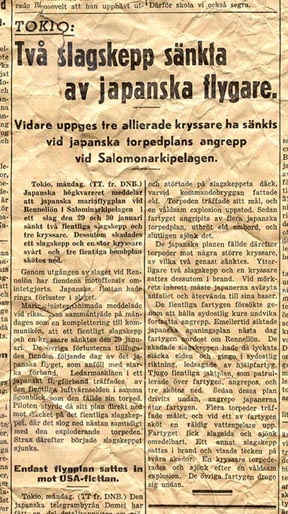 The title of the article in Figure 7 reads “Two Battleships Sunk by Japanese Pilots.” Unfortunately, the names of the two battleships were not given.